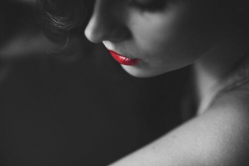 Photoshopを使って口紅の部分以外をモノトーンにする方法です。